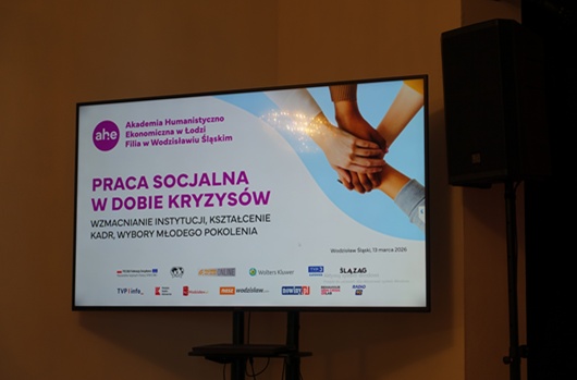 Ponad 200 uczestników wzięło udział w zorganizowanej 13 marca 2026 r. w Wodzisławiu Śląskim – konferencji pt. „Praca socjalna w dobie kryzysów - wzmacnianie instytucji, kształcenie kadr, wybory młodego pokolenia”, zorganizowanej przez Akademię Humanistyczno-Ekonomiczną w Łodzi, Filia w Wodzisławiu Śląskim i przy współpracy m.in. z naszą Federacją w ramach obchodów Światowego Dnia Pracy Socjalnej (WSWD).
